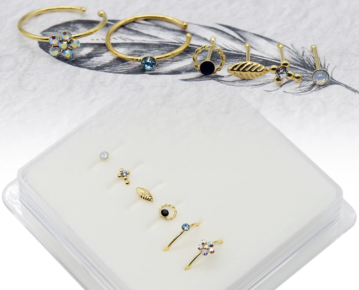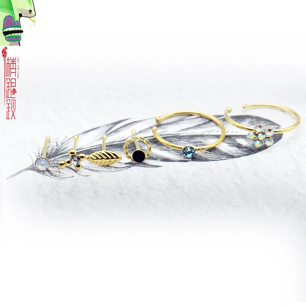 Новинка 2022, 6 разных кристаллов, шпильки для носа с золотым покрытием, искусственное серебряное кольцо для пирсинга в носу, тонкое бриллиантовое кольцо для носа 22G