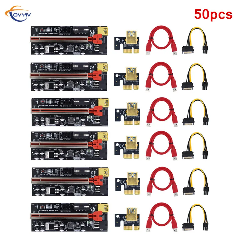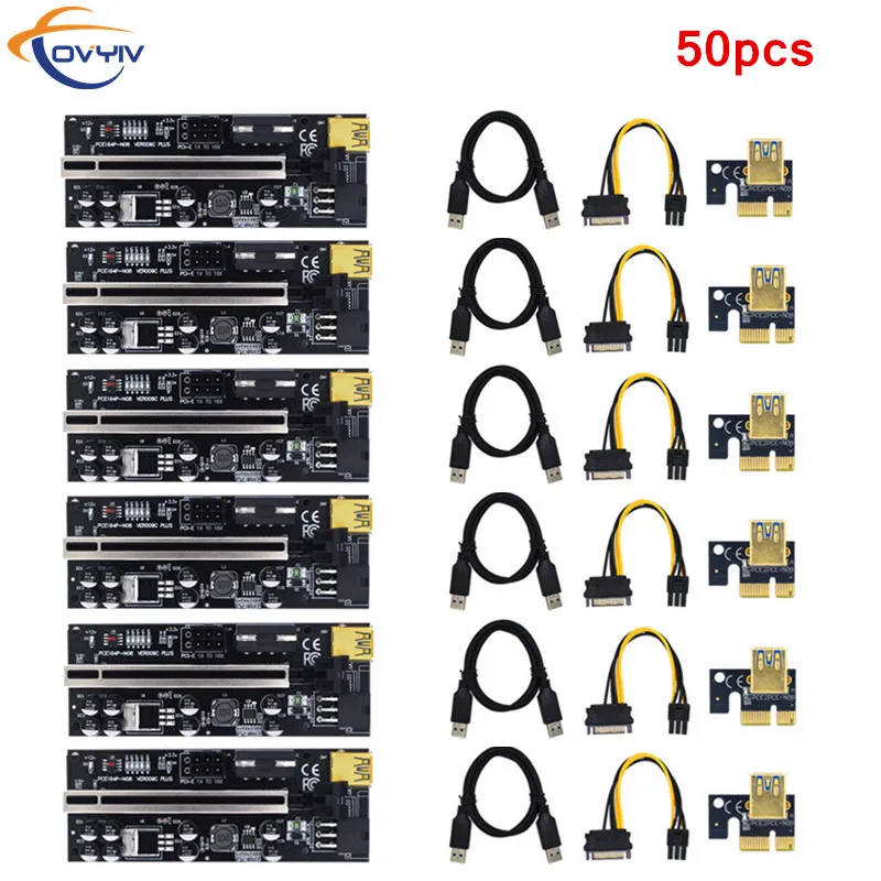 50 шт. COVYIV 009s 009C 009S Plus PCI E Райзер-карта PCI-EPCIE USB 3,0 до 6 контактов адаптер кабель Майнинг Райзер для видеокарты