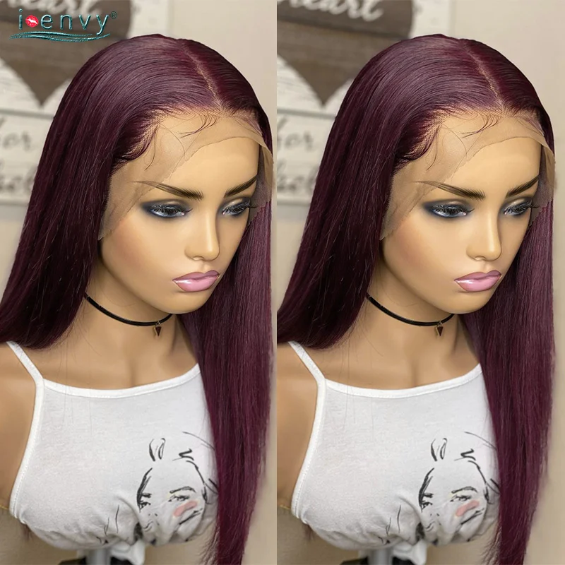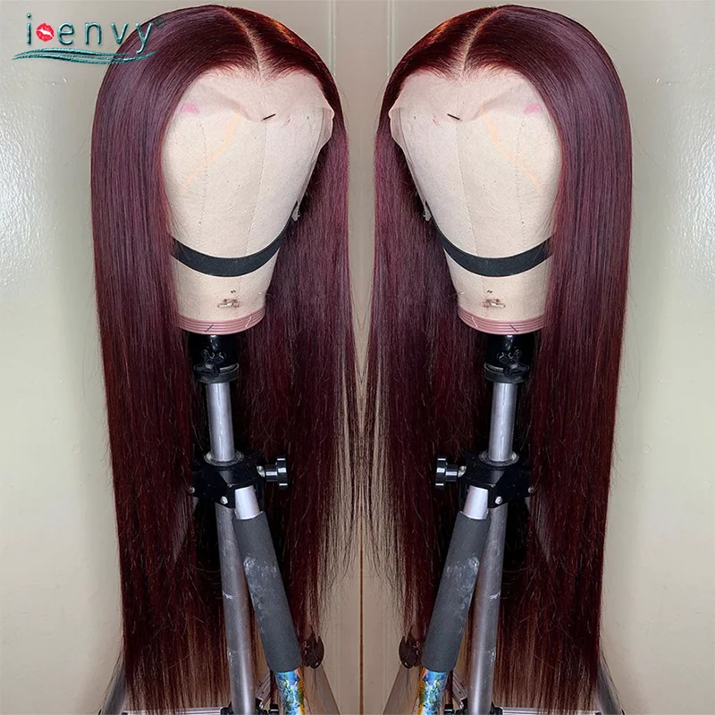Бордового цвета, парик на кружеве, 99J, человеческие волосы, парик, кость, прямой, прозрачный, фронтальный парик на шнурке, человеческие волосы, перуанские волосы Remy