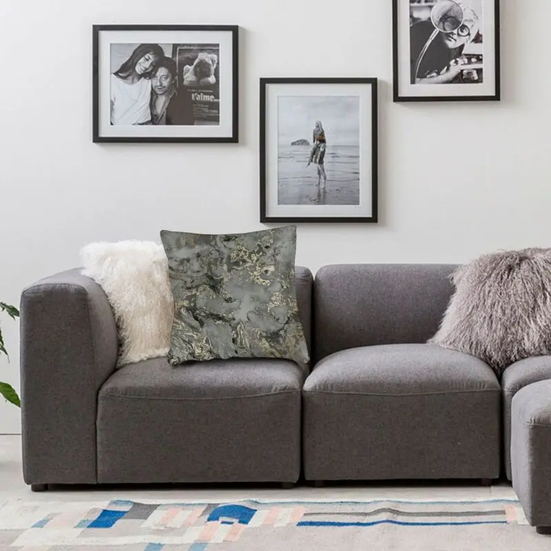 Черно-Золотая и серая наволочка с мраморной текстурой, домашняя декоративная фотодекоративная подушка для гостиной