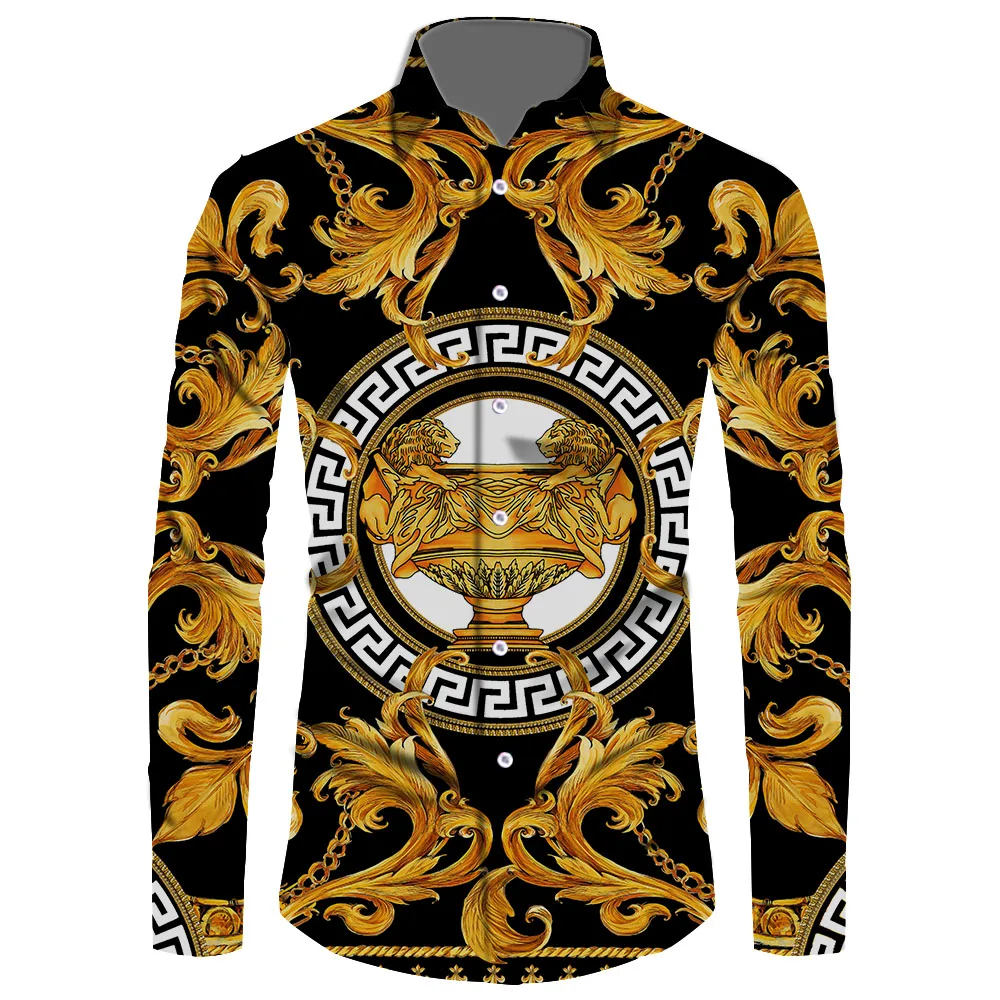 Рубашка мужская с длинным рукавом, топ в стиле барокко, цвет черный...