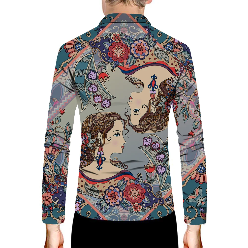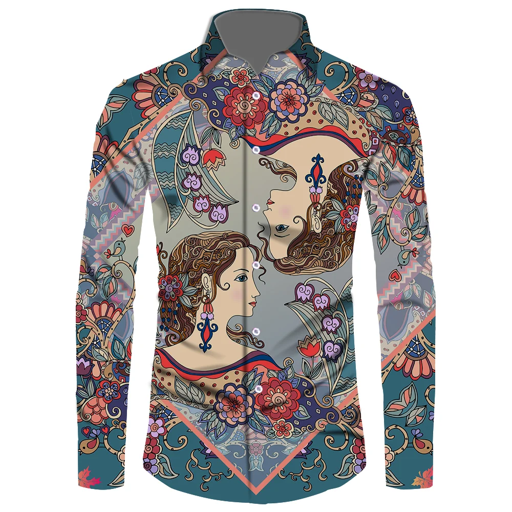Мужская рубашка с длинным рукавом и принтом в этническом полинезийс...
