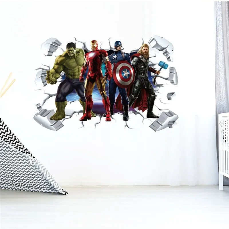 3D Наклейка на стену мстители для мальчиков, самоклеящаяся Съемная ...