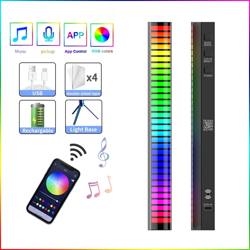 Очень интересные огни, которые дополняют мою аудиосистему. Приложение отлично работает и прост в использовании и найти. Просто отсканируйте qr-код на коробке, и вы будете перенаправлены на сайт, чтобы получить приложение. Чувствительность микрофона отличная, и товар имеет хороший способ адаптироваться даже к высоким объемам и отображает отличное разрешение. Я очень доволен и приятно удивлен. Единственным недостатком была большая расширяющаяся подставка. Было бы полезно улучшить стабильность и качество стендов. Я думаю, что чем меньше, тем компактнее они лучше, так как они менее заметны и лучше сидят из-за меньшего размера. В комплект входит небольшая Инструкция и usb-шнур (белый) и двусторонняя лента для дополнительного крепления. Все в хорошей покупке, если вы Горите.