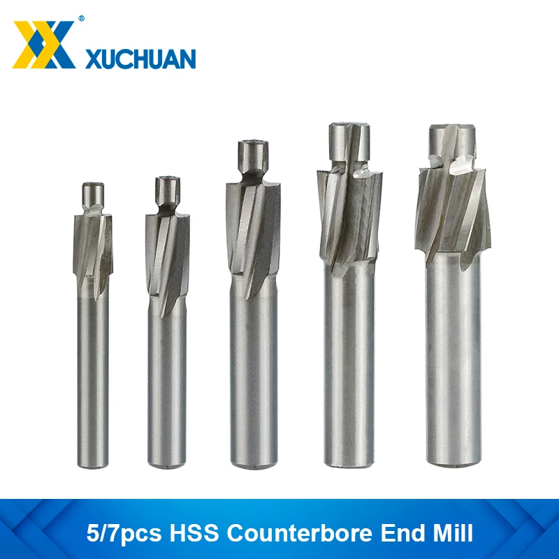 5/7 шт. HSS Цековка торцевой фрезы M3-M12 пилот Долбежные инструмент фреза из быстрорежущей стали для конических концевых фрез