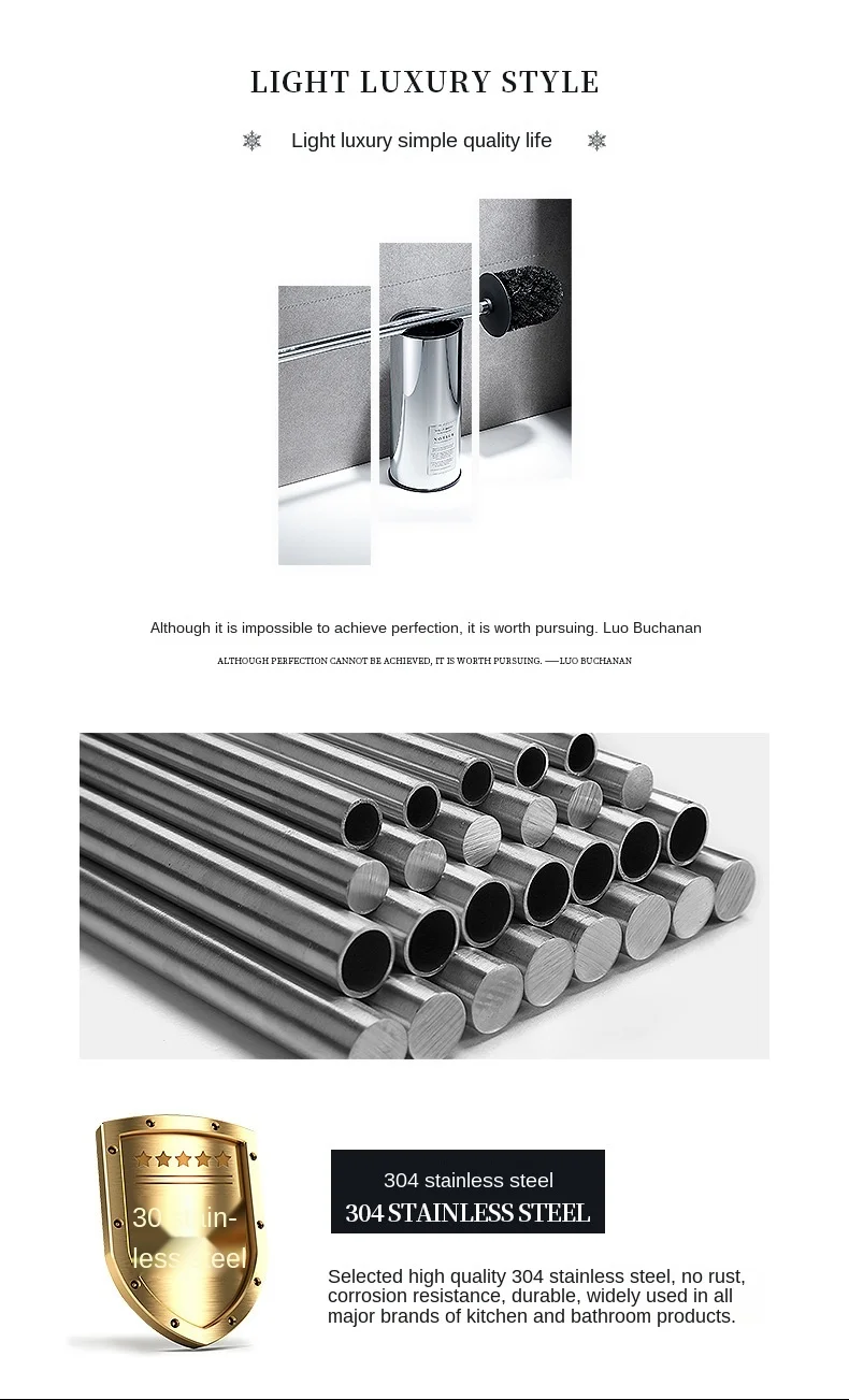 Настенная щетка для унитаза из нержавеющей стали, бытовой инструмент для чистки без мертвого угла, гальванический светильник, роскошные аксессуары для ванной комнаты