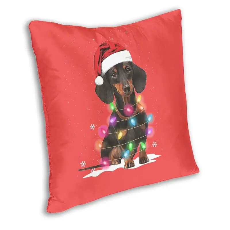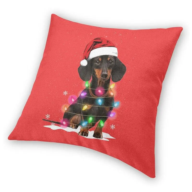 Наволочки на диванные подушки в виде таксы с рождественскими огнями и снегом, 40x40 см