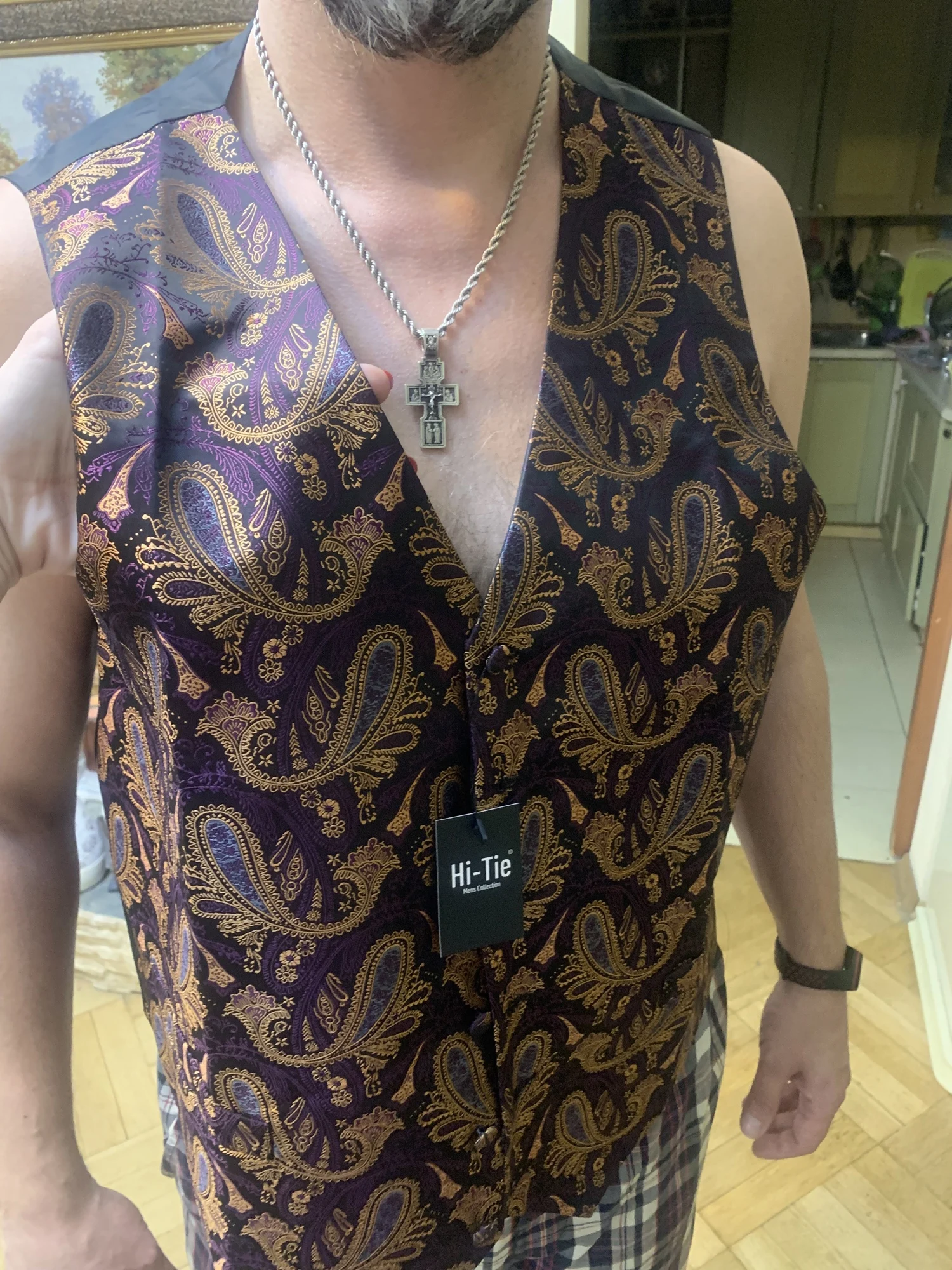 Привет-галстук 100% шелк мужские жилеты Золотой Пейсли 4 шт жилет г...