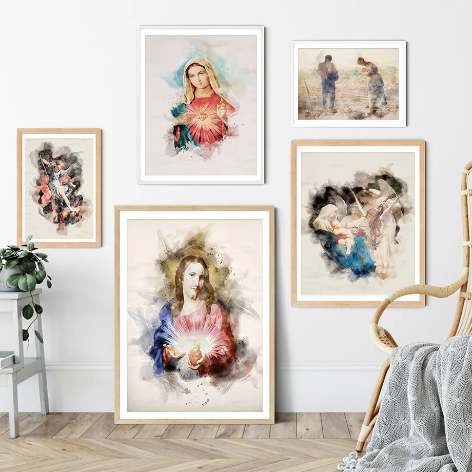 Настенная картина с изображением Иисуса Бога, Марии, папы, Христианской Библии, постер на холсте и принты в скандинавском стиле, настенные картины для декора гостиной
