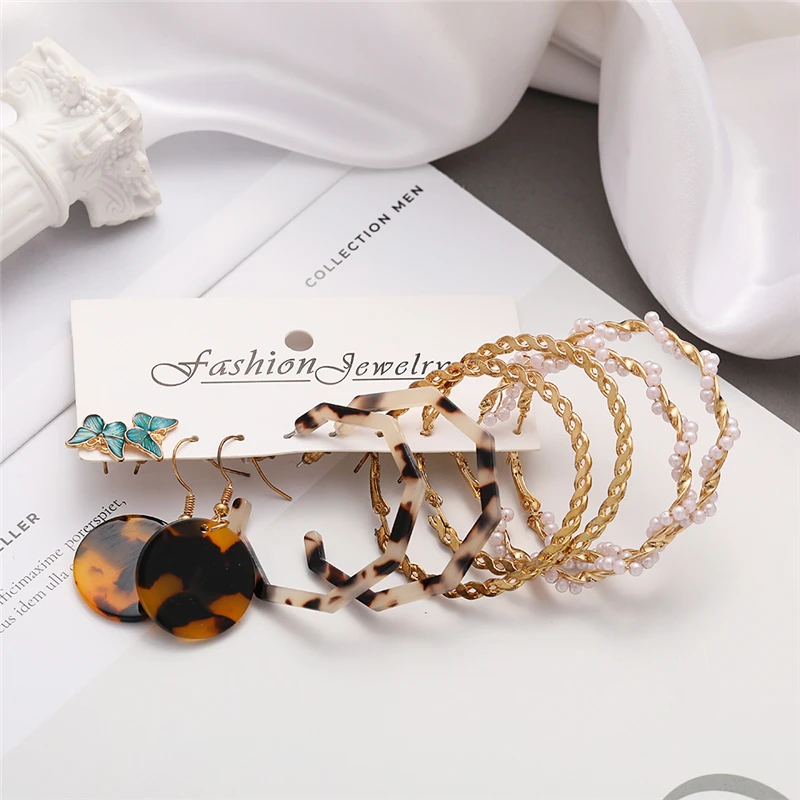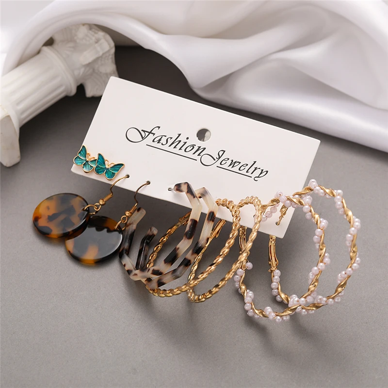Панк Леопардовый цвет, акриловый Смола Обруч Комплект сережек для ж...
