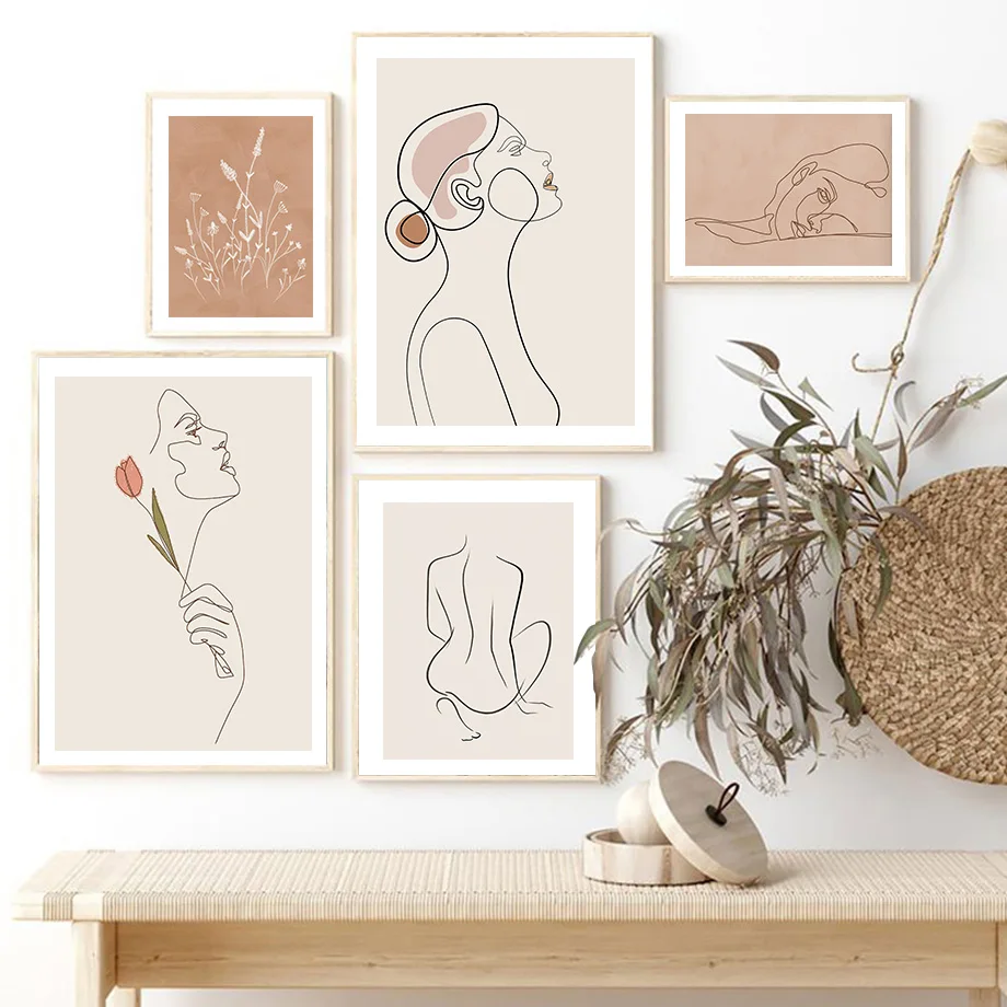 Абстрактная линия Женская Минималистичная настенная Картина на холс...