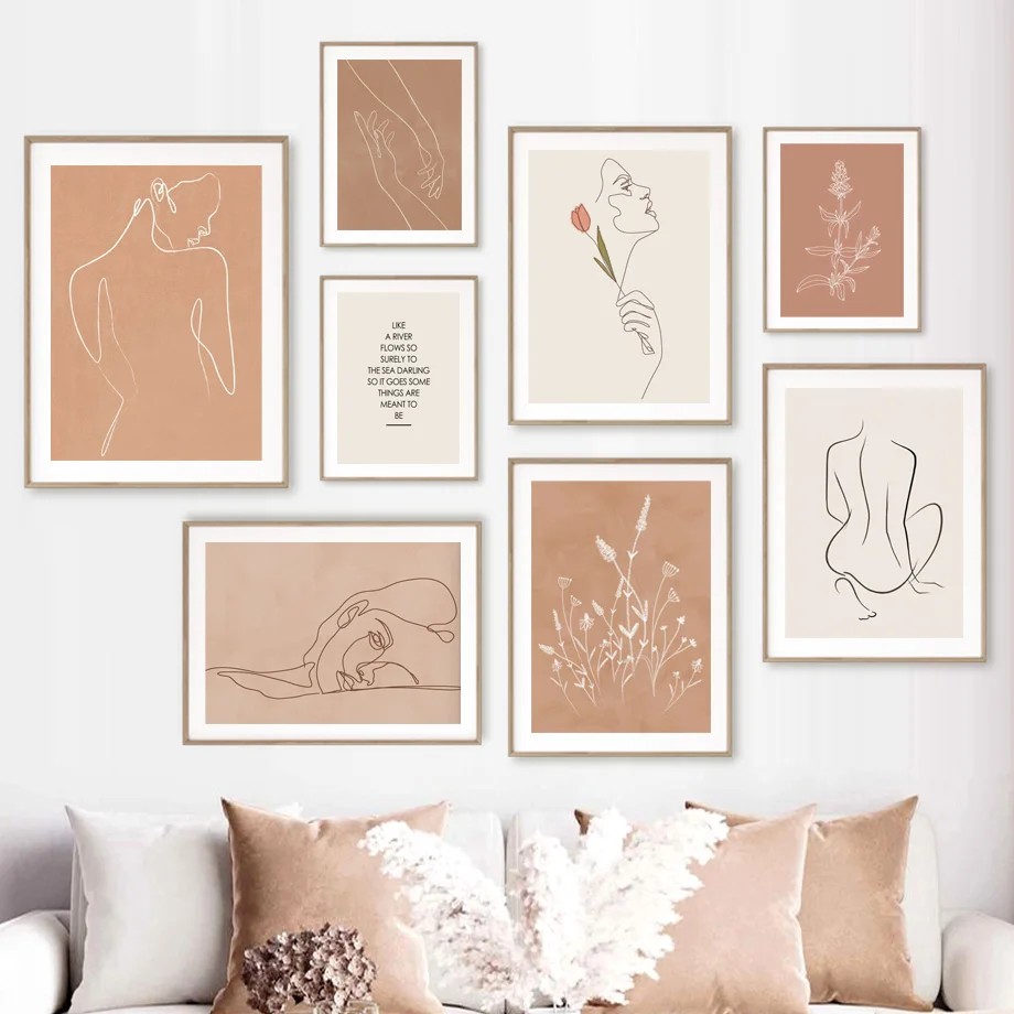 Абстрактная Минималистичная линия, Женская настенная Картина на хол...