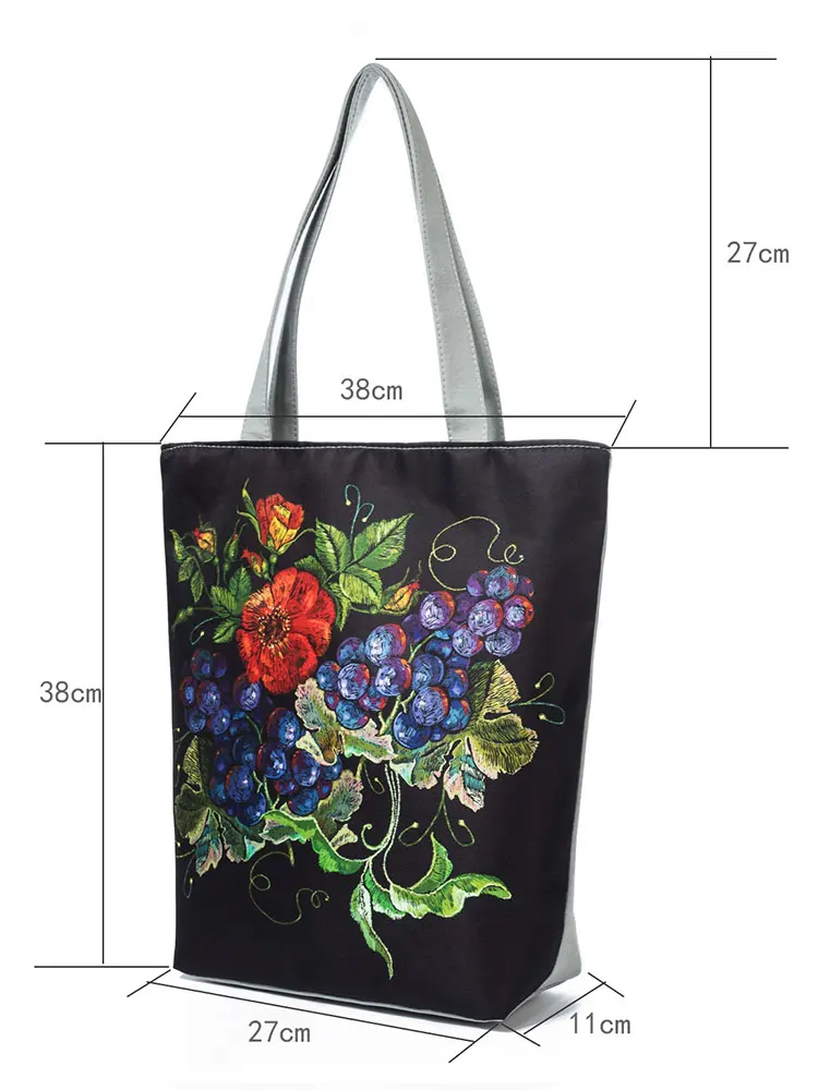 Модные чёрные цветы сумки с принтом винограда, портативная универсальная сумка через плечо, большая женская сумка, винтажная женская сумка-тоут в эстетике