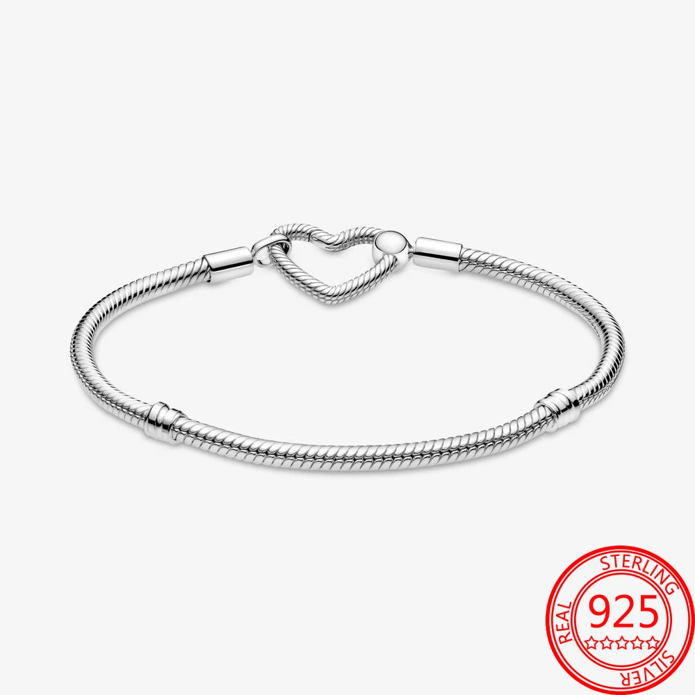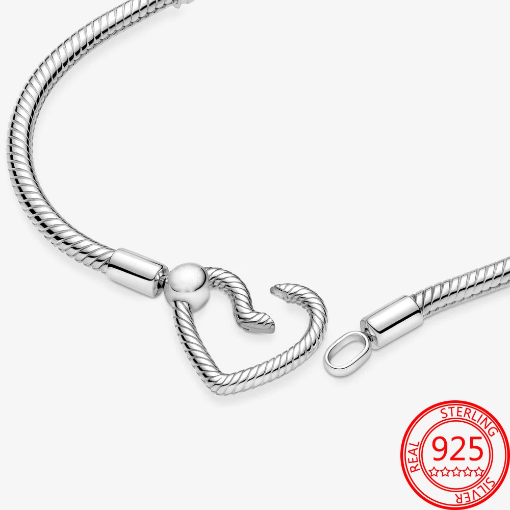 Новый браслет из стерлингового серебра S925 с застежкой в форме сердца и змеиной цепью, модные ювелирные украшения для свадебной вечеринки