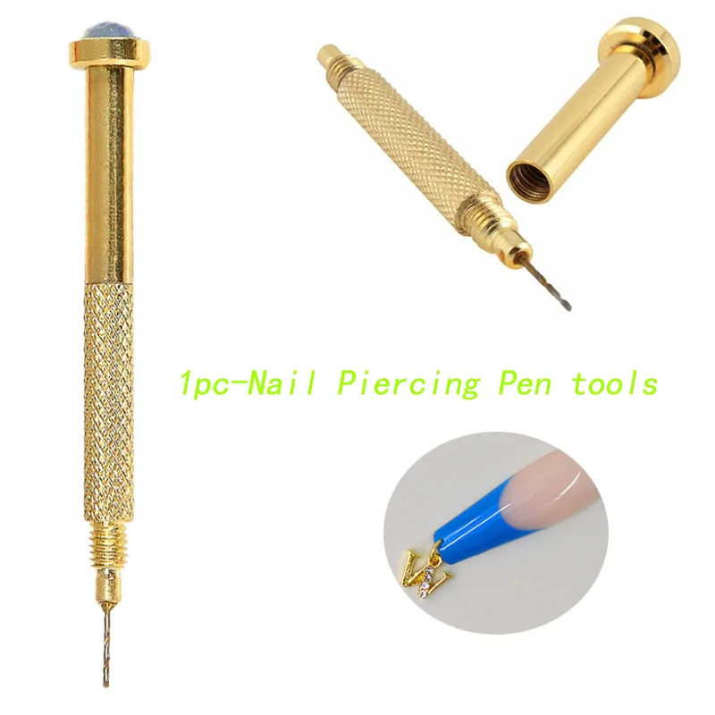 1Pc-Gold перфоратор для ногтей художественные талисманы болтающиеся инструменты, 8,5 см ручная дрель для маникюра, DIY Инструменты для украшения ногтей, ручка для пирсинга # TR03