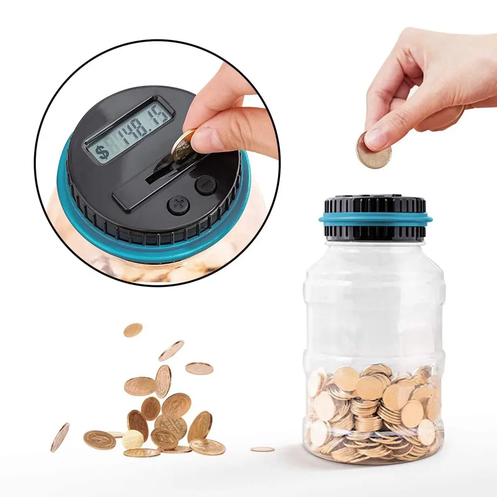 4. Цифровой ЖК-дисплей автоматически отслеживает экономию. Включает +/-кнопки на крышке, чтобы добавить/вычесть монеты, чтобы сохранить вашу экономию, рассчитанную правильно.