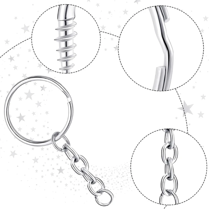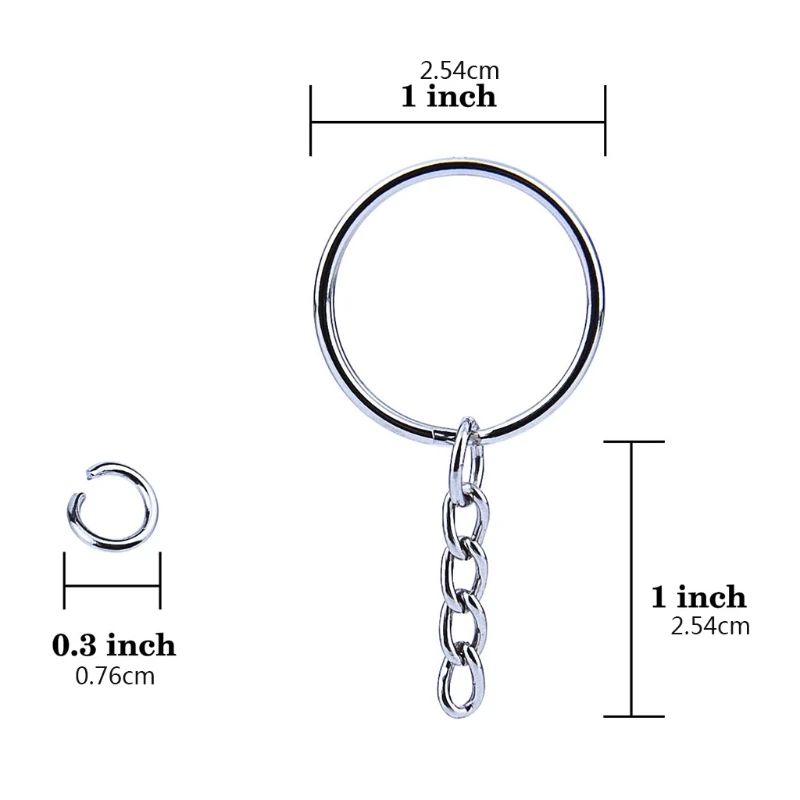 100% новый и высокое качествоКаждое раздельное кольцо для ключей с цепочкой поставляется с отдельным кольцом для прыжков, поэтому вам не нужно напрягаться, чтобы открыть его перед соединением вещей.Легко для вас повесить украшения, Подвески, DIY изделия из смолы или другие аксессуары, легко установить, сделать ваши собственные проекты DIY легко.Наборы колец для ключей также являются отличным подарком для друзей и семьи.Дизайн кольца для ключей с цепочкой и соединителем, гвоздиком, вам не нужно покупать дополнительные детали, идеально подходит для домашней автомобильной брелоки, шнурка, подарков и других художественных и самодельных ювелирных изделий.Наши плоские брелоки с цепочкой изготовлены из высококачественного серебристого сплава, имеют изысканную полировку, антикоррозию, антивыцветание, долговечность и прочность. Гладкие поверхности и края не царапают ваши руки и изделия.