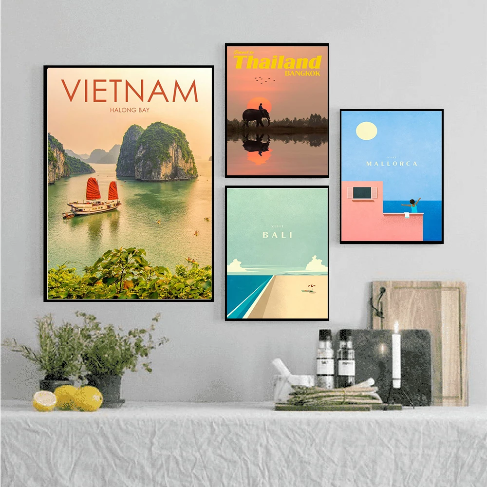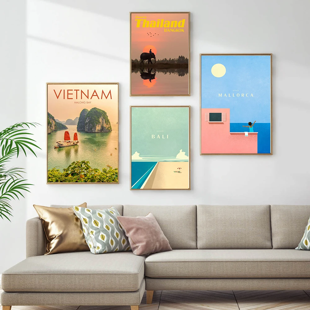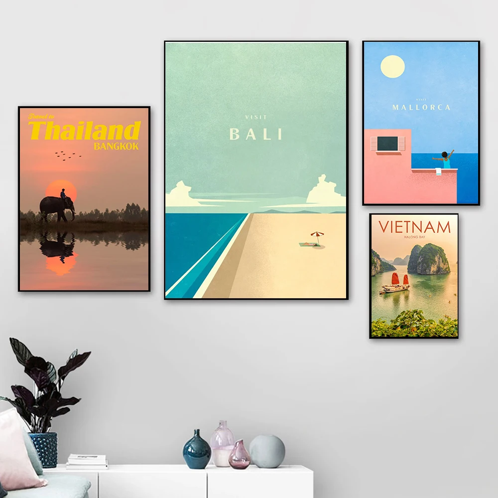 Туристический плакат посетите Бали, Вьетнам, Таиланд, холст, живопись, Скандинавское искусство, принт, Современная Настенная картина для декора гостиной