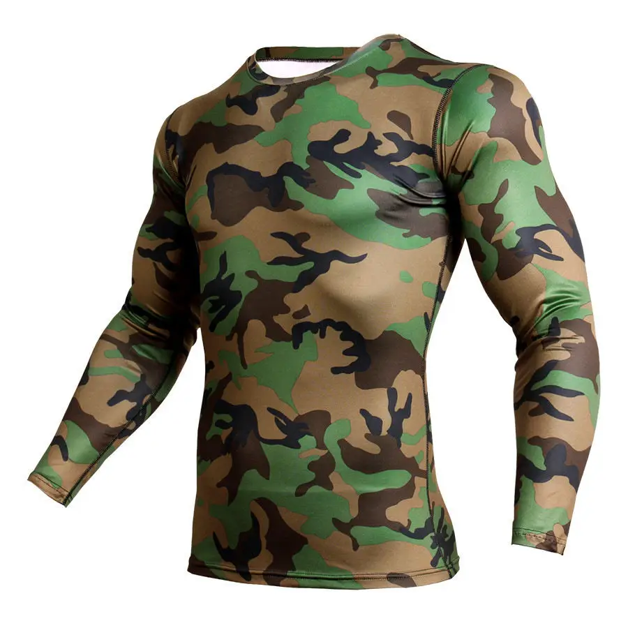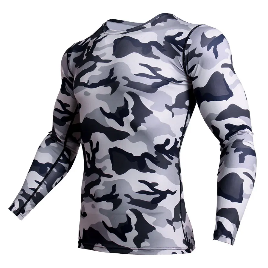 Камуфляжная компрессионная рубашка AYJK7, Мужская Однотонная футболка с длинным рукавом для фитнеса, мужские спортивные быстросохнущие Модные топы