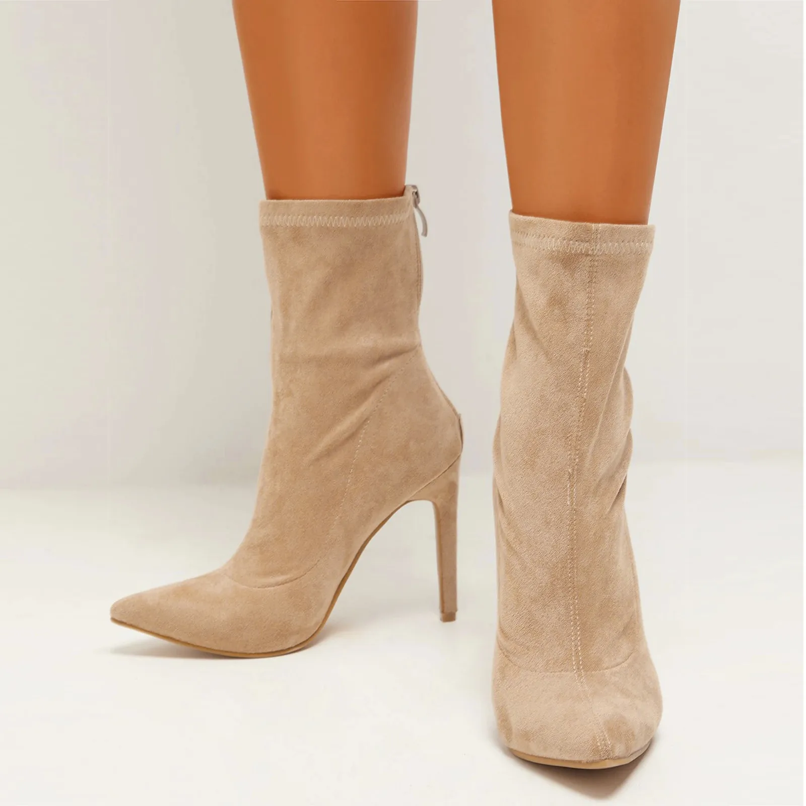 Женские ботинки женские ботинки до середины икры в стиле ретро Ботинки замшевые Ботинки на каблуке с острым носком