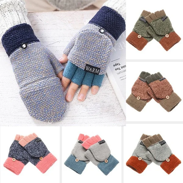 Зимние теплые шерстяные перчатки, вязаные плотные перчатки без пальцев, с откидной крышкой, подарки для женщин, митенки, перчатки