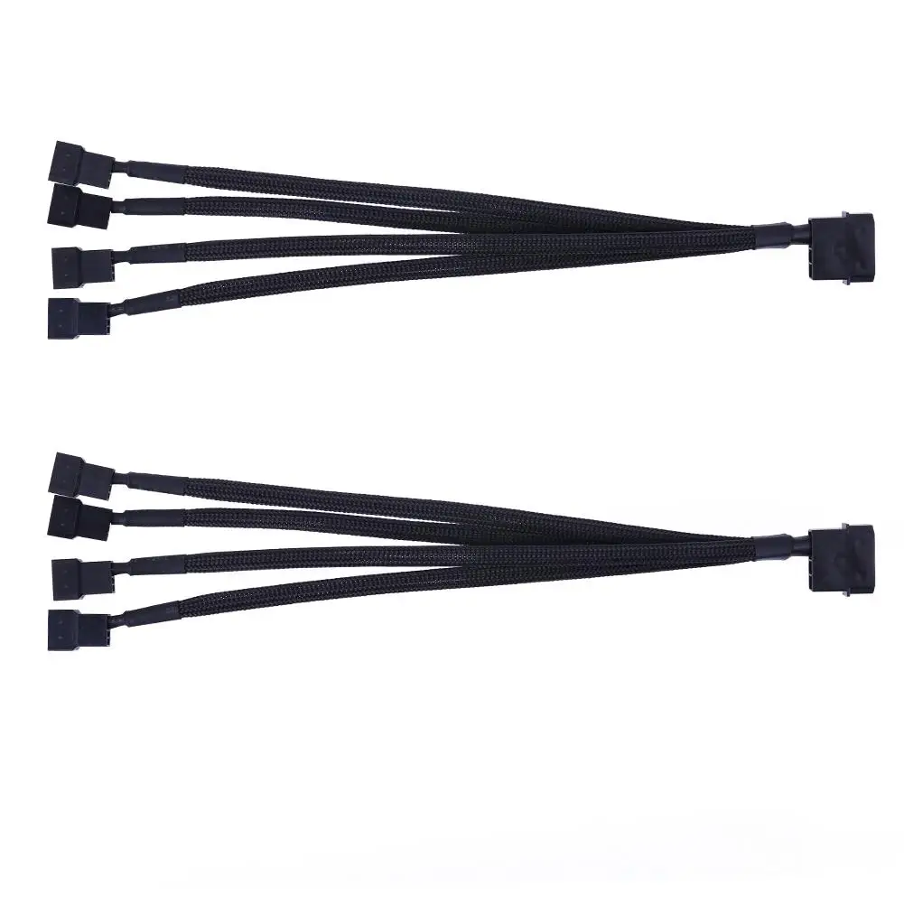 Штепсельная Вилка для блока питания IDE Molex, охлаждающий вентилятор с черным рукавом и 4 разъемами, для ПК, компьютера