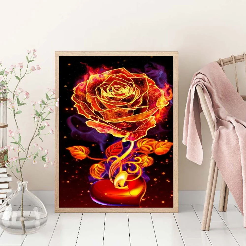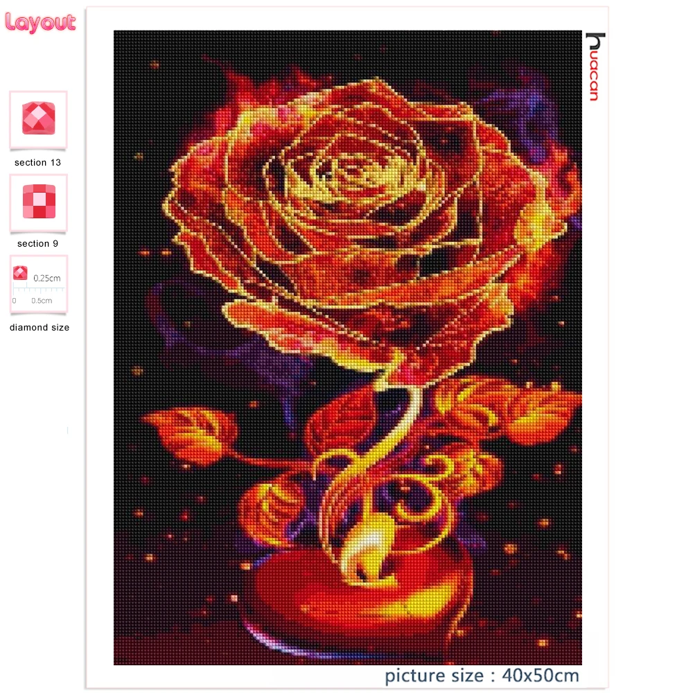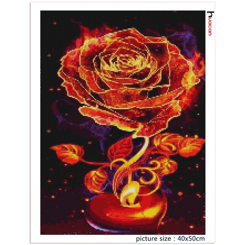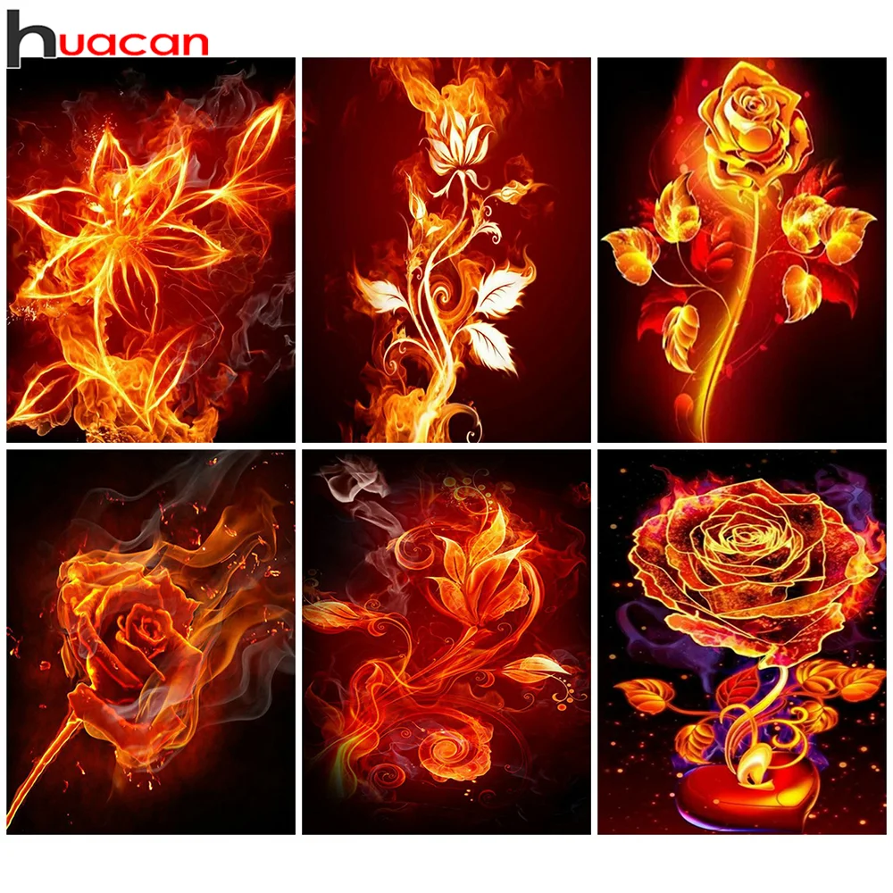Huacan полноформатнаякруглая алмазная живопись, роза, Алмазная мозаика, фантазия, огненная Цветочная вышивка, домашний декор