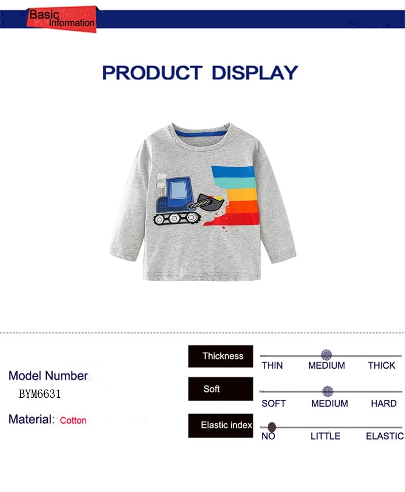 Футболка хлопковая с длинным рукавом и круглым вырезом для мальчиков