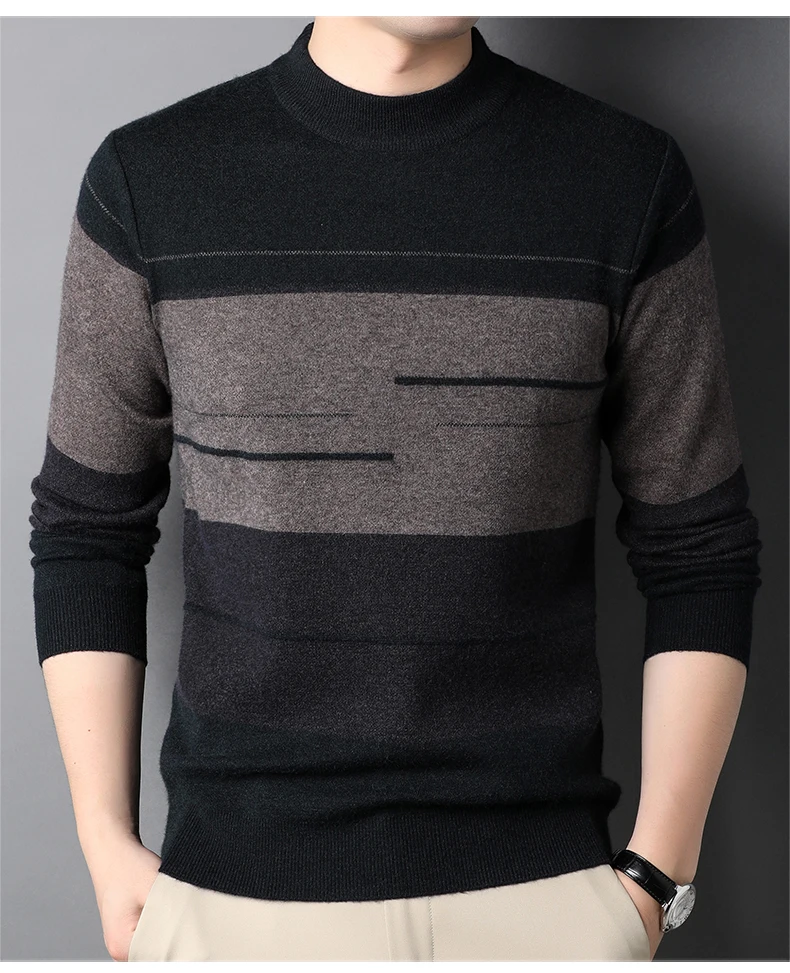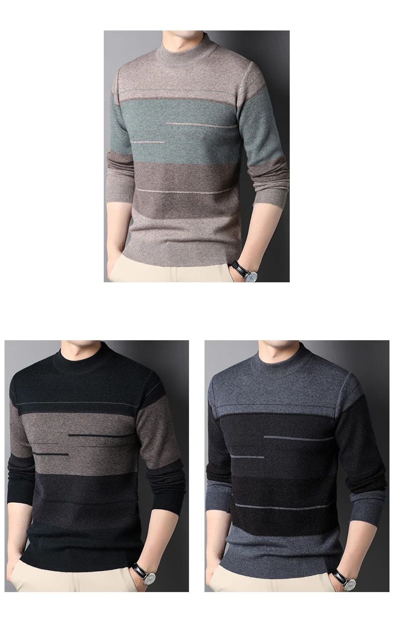 Мужской вязаный свитер MIACAWOR, теплый облегающий шерстяной пулове...