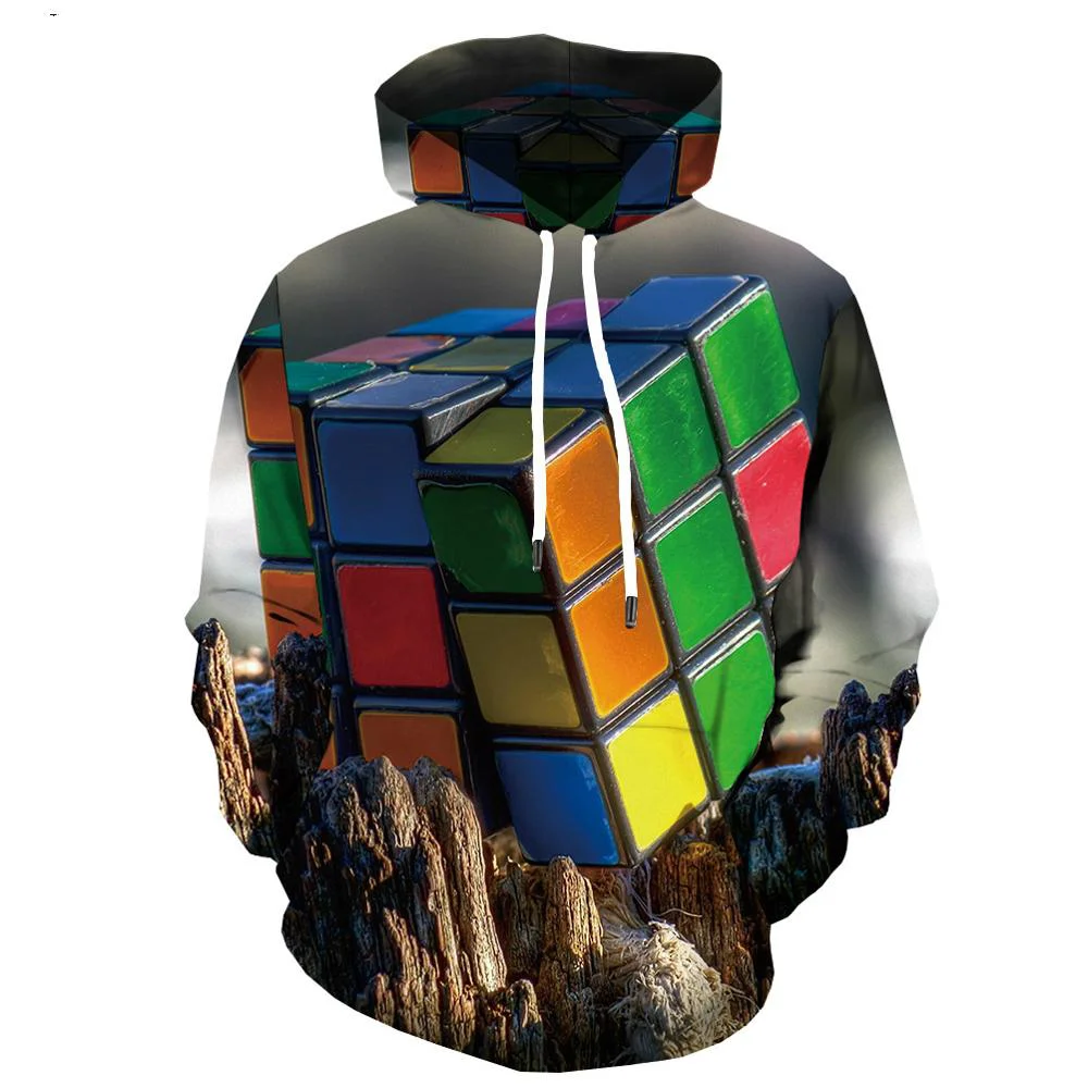 Толстовка мужская с 3D-принтом, худи с геометрическим рисунком, худи с кубиками, повседневная психоделическая толстовка с капюшоном, забавная Осенняя уличная одежда