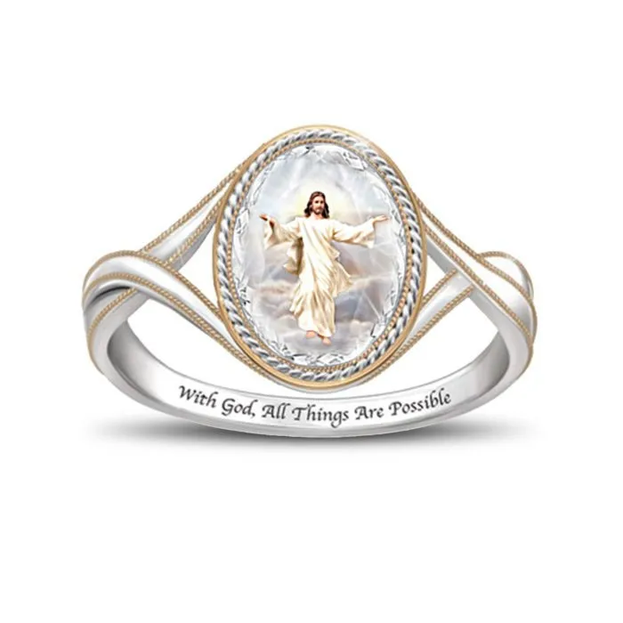 Недорогие кольца, круглое кольцо с изображением Иисуса для девочек-подростков, ювелирные изделия для женщин, модные ювелирные изделия, аксессуары для женщин, оптовая продажа ювелирных изделий