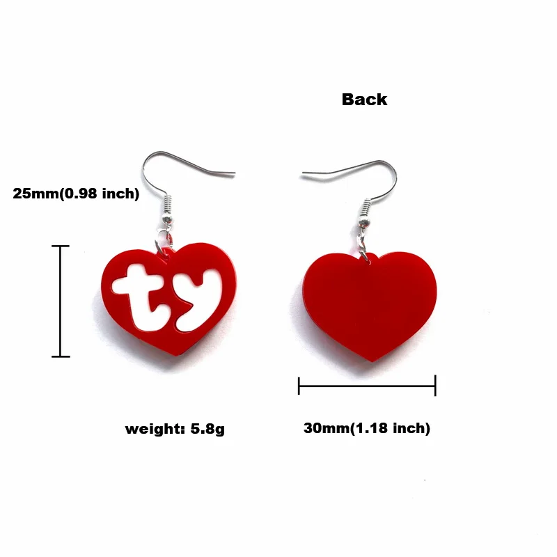 Женские двухслойные серьги-подвески с красным сердцем и белыми буквами