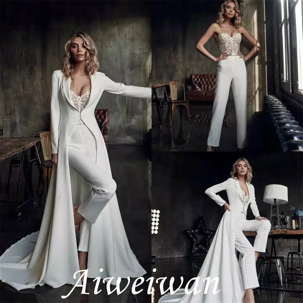 Новинка комбинезон в богемном стиле Свадебные платья кружевное с длинным пиджаком с аппликацией милые свадебные Брюки Костюм пляжное платье для невесты 2021