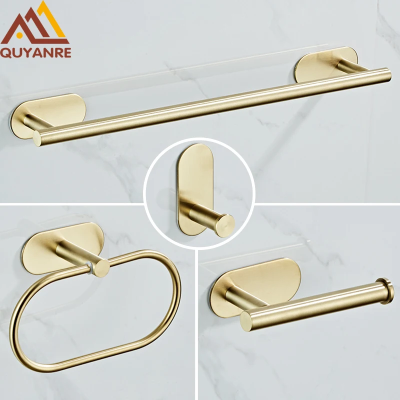 Матовый золотой набор оборудования для ванной комнаты, держатель для бумаги, вешалка для полотенец, крючок для халата, держатель для полотенец из нержавеющей стали, аксессуары для ванной комнаты без гвоздей