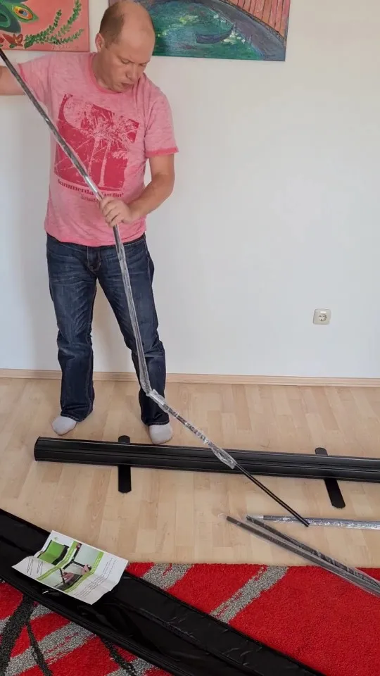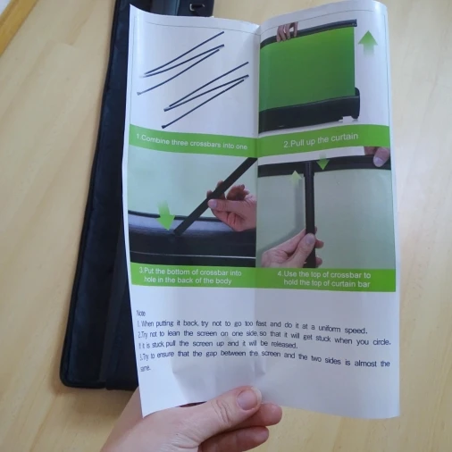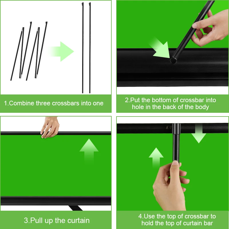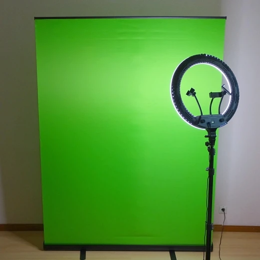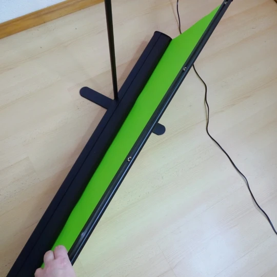 Hinstellen, откройте, вытяните и закончите. Всего просто! Зеленый фон находится на вращающейся трубке подшипника в патроне. Поэтому нет отдельной фоновой системы, необходимо только создать. Фон экономит пространство и может с ручкой также удобно носить с собой. П. С. Я использую iMovie на своем iPhone, чтобы изменить фон.