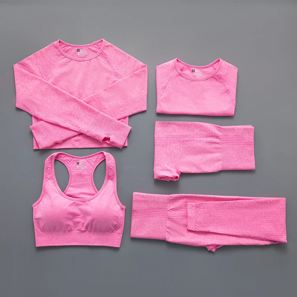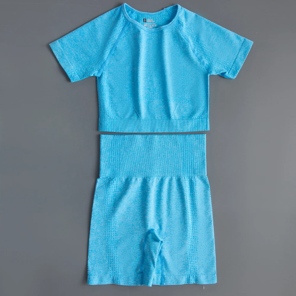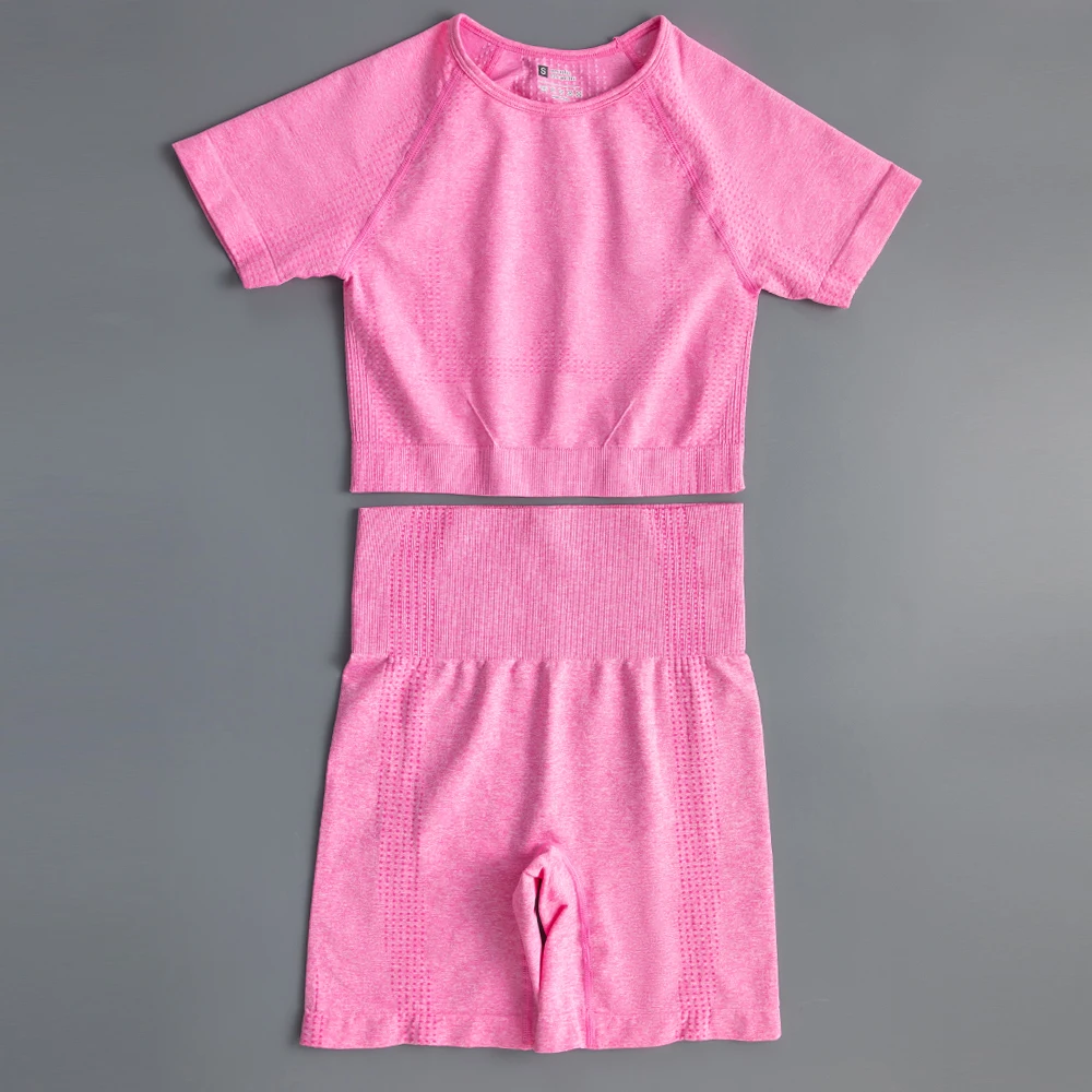 Женский комплект одежды для спорта, бесшовный спортивный и спортивный комплект yoga,для йоги одежда женск Футболки с коротким рукавомкостюм женский спортивный костюм женск, короткий топ, с высокой талией, леггинсы, 2