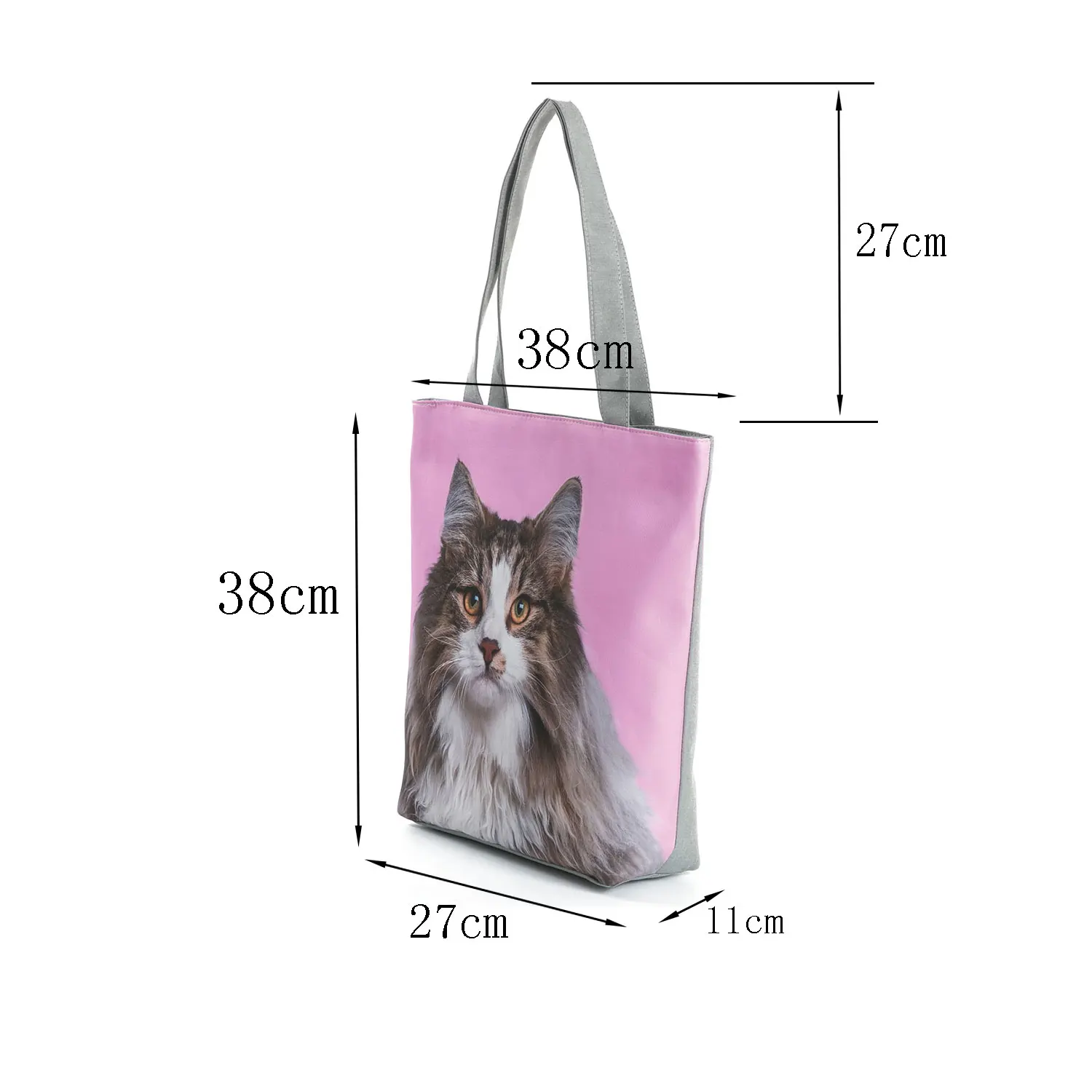 Шикарная Сумка-тоут с принтом кота, милая сумка с животными, модная сумка на плечо, вместительная сумка для покупок, портативная дорожная сумка для хранения