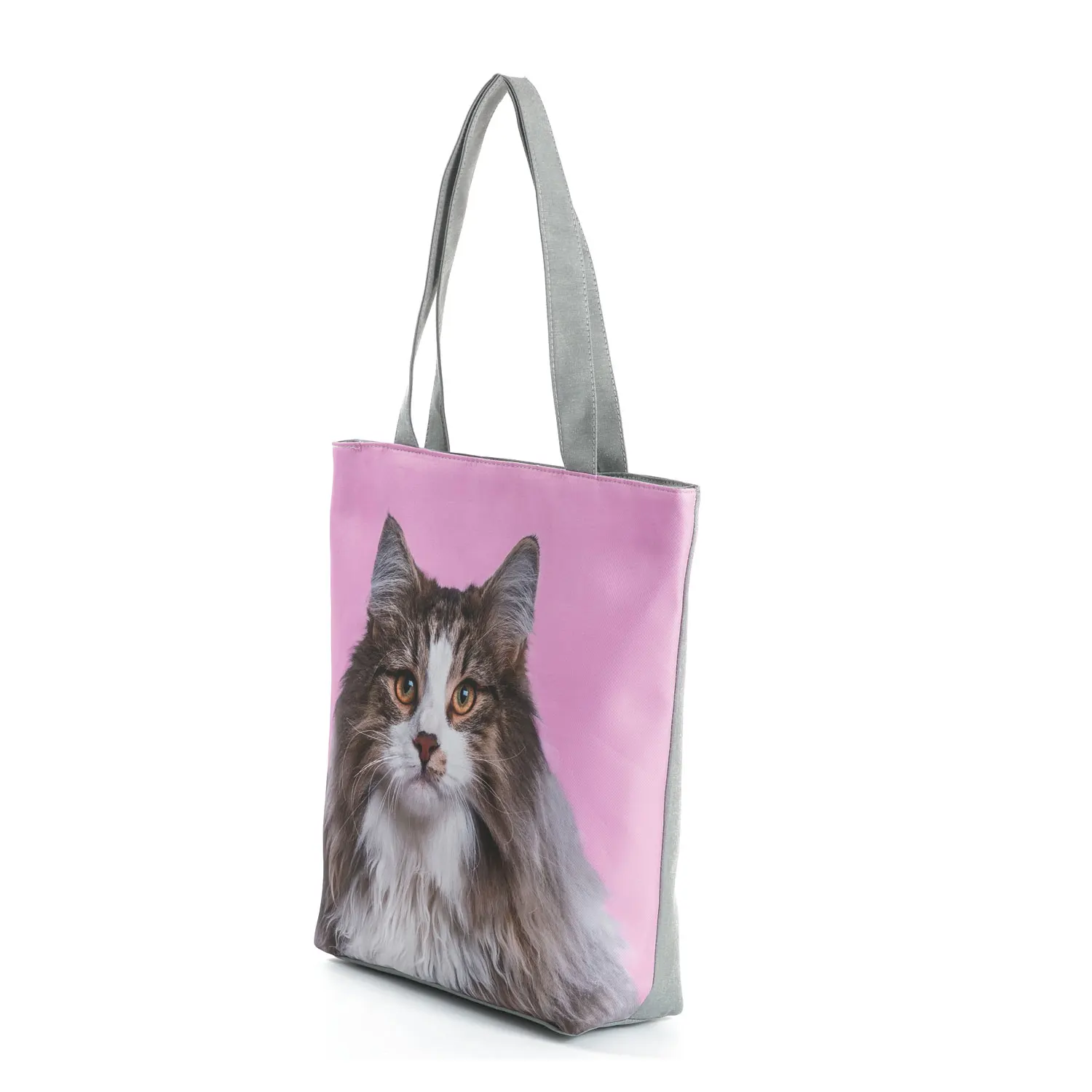 Сумка-тоут с принтом кошки, модный саквояж на плечо с милыми животными, вместительный мешок для покупок, портативная дорожная сумка для хранения