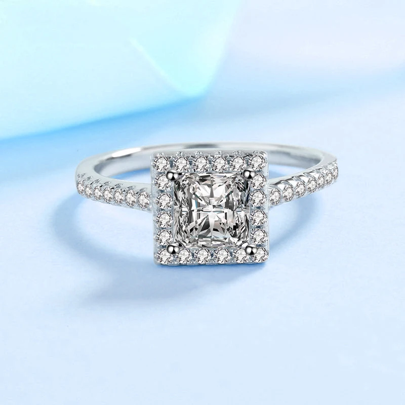 Принцесса моиссанит Halo обручальное кольцо 1 карат Платиновое Покрытие чистое серебро кольца пройти Алмазный тест Gra Сертификация включает