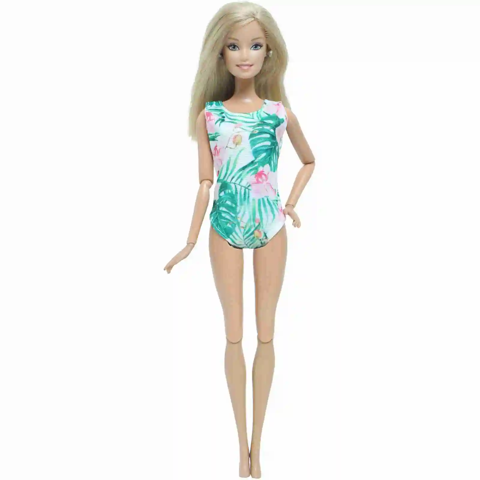 Цельный купальник с зелеными листьями и цветочным узором, Модный Купальник, летняя пляжная одежда для купания, аксессуары для кукол Барби, игрушка для девочек
