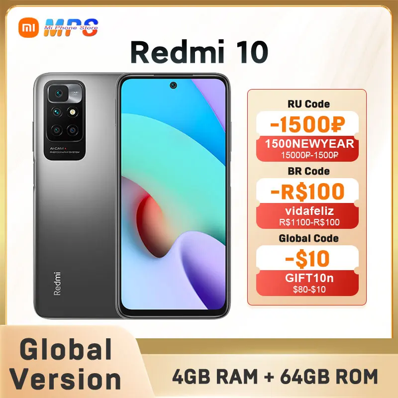 Глобальная версия Xiaomi Redmi 10 4 Гб 128 Гб новый смартфон MediaTek Helio G88 Octa Core90Hz FHD дисплей 50MP AI quad camera