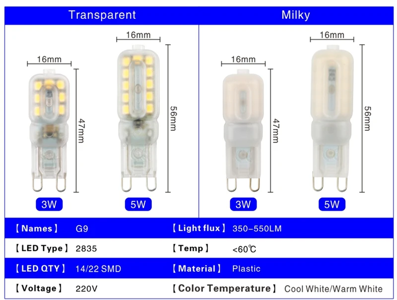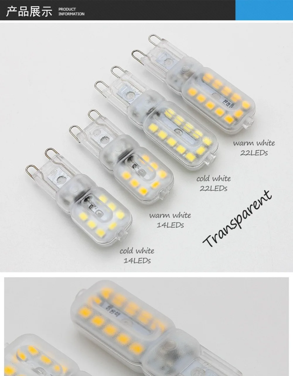 Светодиодные лампы G9 2 шт.лот, с регулируемой яркостью, 3 Вт5 Вт, ...