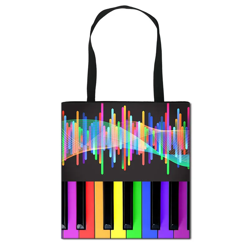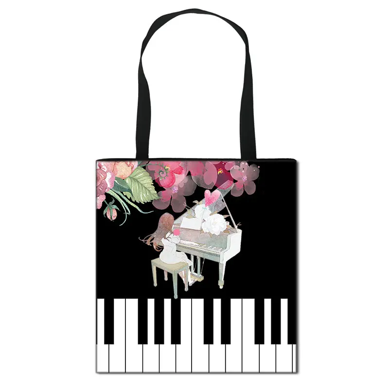 Сумка-тоут женская холщовая с музыкальным принтом, саквояж на плечо для пианино, гитары, вместительный саквояж для покупок, дорожная сумка
