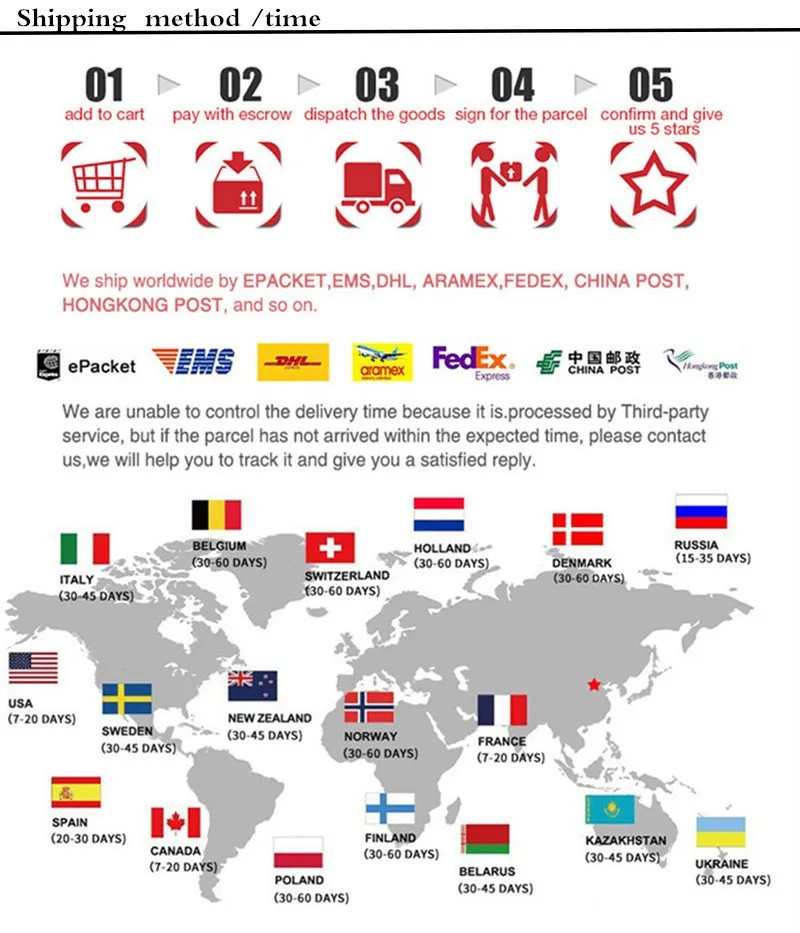 1. Размер и цвет очень важны для платья, поэтому, когда вы выбираете цвет и размер, пожалуйста, сделайте выбор в соответствии с нашей таблицей цветов и таблицей размеров, поскольку размер может отличаться от размера в вашей стране.2. Если отправка в Бразилию, пожалуйста, сообщите нам получатель CPF в коробке с сообщением, без него мы не можем разместить платье.Если вы человек в Бразилии, пожалуйста, примите во внимание. В вашей стране, это очень размыто, чтобы очистить таможню, поэтому мы обычно отправляем платье Почта Китая воздухом (25-30 дней), и этот способ доставки является наиболее простым в очистке.Вопросы и ответы1. Почему стоит выбрать нас----- Мы являемся профессиональным производителем платьев, занимающимся этой линией более 14 лет, которые уделяют большое внимание качеству платья и имеют конкурентоспособную цену.Собственная фабрика гарантирует своевременную доставку продукции2. Как разместить заказ?----- Выберите дизайн -- детали подтверждены в сервисном обслуживании --- оплата сделана --- производство начато ---3. Время производства и время доставки?----- В общем, наше время производства составляет 5-7 дней, ускоренный заказ 3-5 дней. При размещении заказа Вы можете проверить общее время доставки.4. Можно сделать чередование на оригинальном дизайне?----- Бесплатная доставка для небольшого чередования, например, добавить ремни, добавить рукава и т. Д., но все запросы должны проверить перед производством.5. Как сделать платья на заказ?---- Вы можете отправить мне картинку платья, тогда мы предложим вам хорошую цену, если вы можете принять, мы отправим вам ссылку для оплаты.6. Принимаем срочные заказы?----- Для срочного заказа, занимает 3-7 дней для различных конструкций, необходимо подтвердить с продажным обслуживанием перед размещением заказа.7: Что делать, если мне не нравятся эти платья?----- Прежде всего, пожалуйста, не волнуйтесь, вы можете связаться с нами, мы поможем вам решить эту проблему.О отзывыПоскольку ваши отзывы очень важны для развития нашего бизнеса, мы искренне приглашаем вас оставить нам положительные отзывы, если вы удовлетворены нашей продукцией и обслуживанием. Это займет всего 1 минуту. Спасибо!Если у вас есть какие-либо вопросы, пожалуйста, спросите меня перед оплатой или оставьте мне новое сообщение, когда вы сделаете это, мы ответим Вам в течение 24 часов.