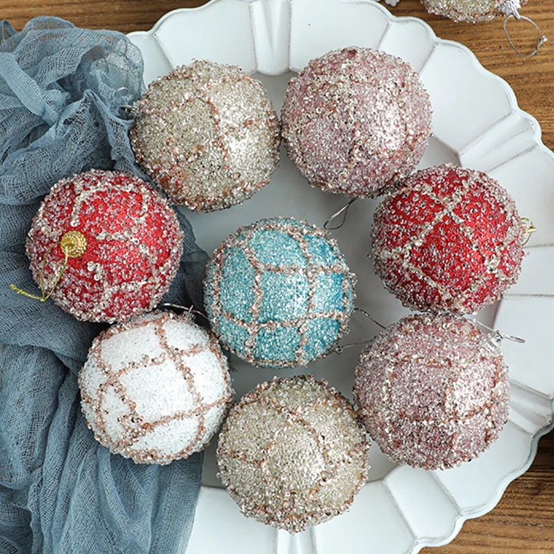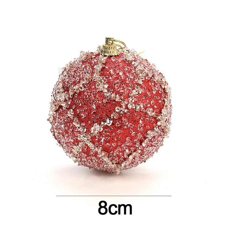 Венок из цветов, 8 см, Рождественский Декор для дома, рождественские Стразы блестящие шары, шар орнамент с рождественской елкой