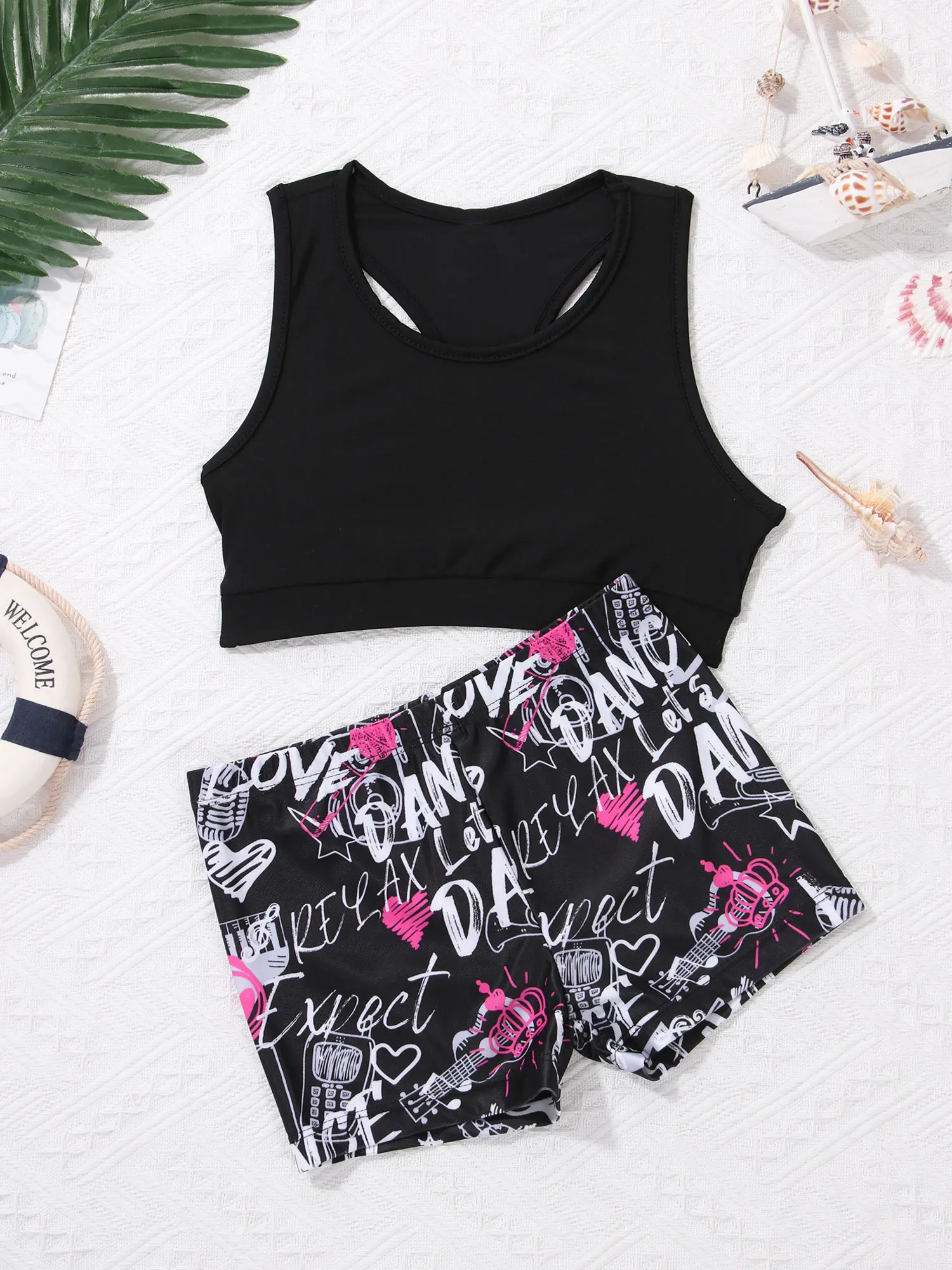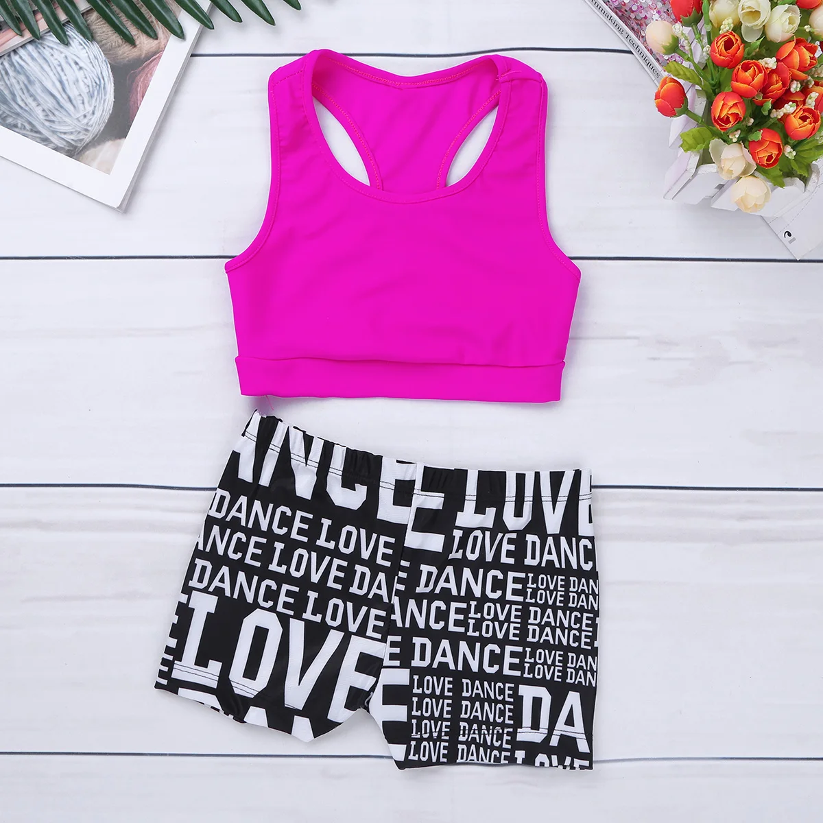Комплекты для йоги, 2 шт., детский спортивный костюм для девочек, спортивный бюстгальтер для спортзала, топ и шорты, одежда для балета и гимнастики, детские танцевальные аксессуары