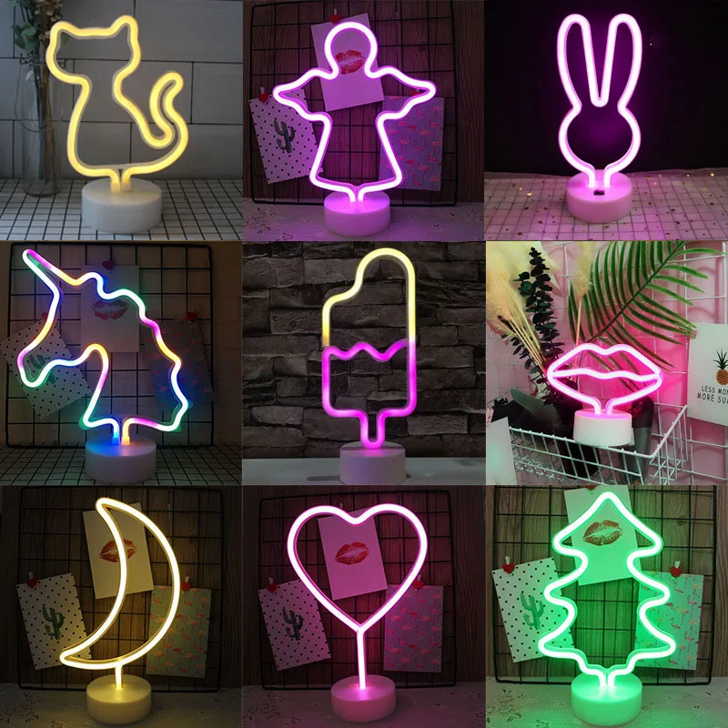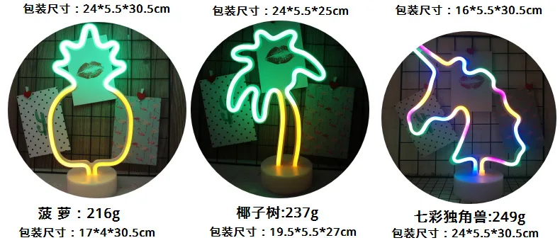 Разноцветный фон с единорогом, светящийся неоновый светильник для комнат, декоративсветильник свет s, розовые неоновые вывески, лампы для декора светодиодный в форме ананаса