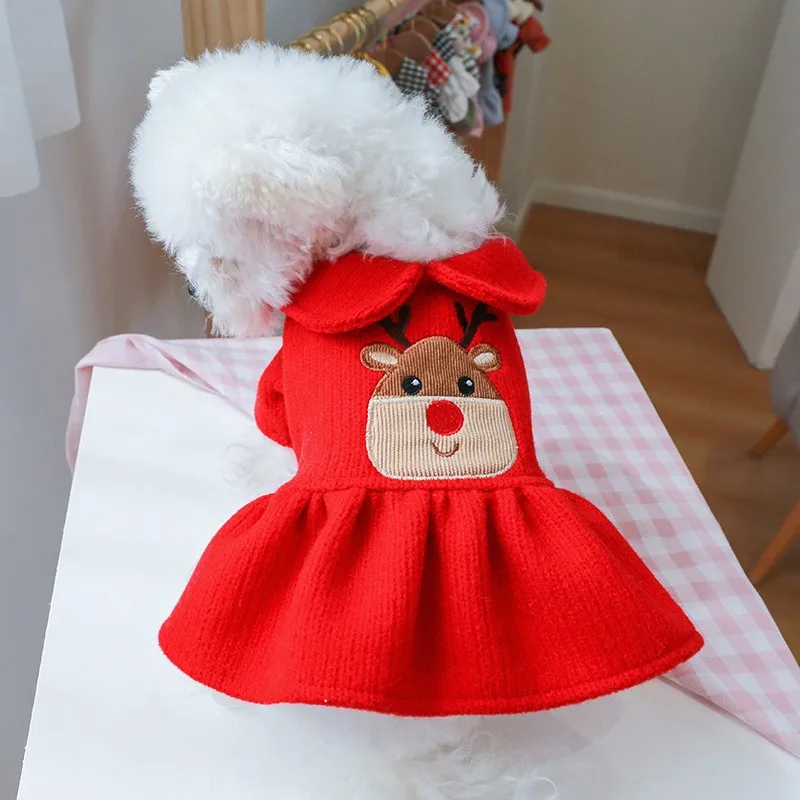 Новая зимняя одежда для домашних животных, одежда для собак, теплое рождественское платье с оленем для пар, юбка, толстовки, одежда для собак, свитер для маленьких собак, одежда, костюм
