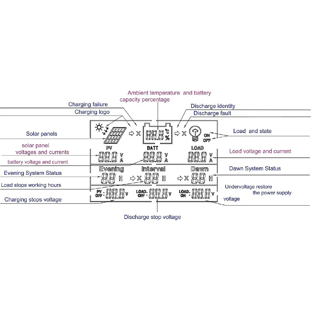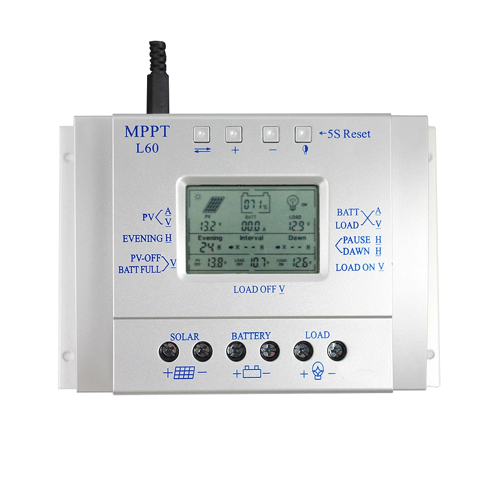 60A регулятором солнечного заряда Управление; ЖК-дисплей Дисплей солнечный регулятор 12/24V с светильник таймер Управление совместим со слежением за максимальной точкой мощности заряда Управление;