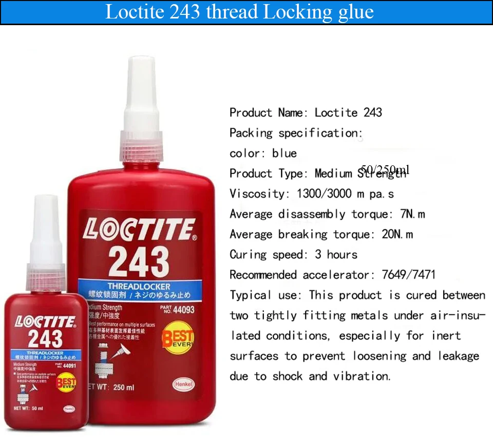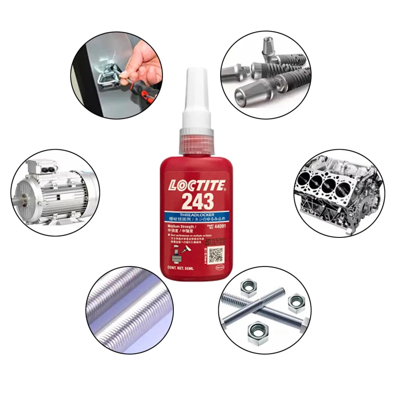 Синий клей средней вязкости Loctite 243, клей для фиксации резьбы, уплотнительный клей 7649, катализатор, ускоренный отверждающий агент 50 мл